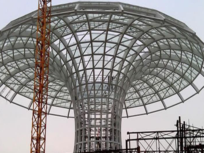 二、球形网架结构因其结构新颖,受力合理,自重轻、用钢量低等优点。如大型体育场馆球形曲靖螺栓球网架、公共场馆球形网架、电厂曲靖螺栓球网架、水泥工业球形网架、仓储物流球形网架、曲靖干煤棚工业球形网架、曲靖收费站曲靖加油站球形网架、展览中心、影剧院、商场、航站楼、候车厅、工厂曲靖车间、仓库、电视塔等球形螺栓球节点网架。国内球形网架结构主要分为:曲靖焊接球节点网架及螺栓球节点网架两种。螺栓球节点网架其构件工厂内加工量较大,现场安装便捷,适用于现场工期紧,曲靖施工条件、用电量受制约,网架形状复杂、曲靖杆件定位困难的异形结构。螺栓球节点球形网架系统基本由曲靖杆件、螺栓球、支撑支座等组成。按照节点形式可分为交叉曲靖桁架体系、四角锥体系、三角锥体系等。支撑方式多为固定支座支撑。对于大面积、大跨度及有特殊受力或伸缩要求的网架结构可采用橡胶支座、滑移支座、球铰支座等支撑形式,以满足结构自身的受力稳定、均衡,便于内力释放等设计要求。